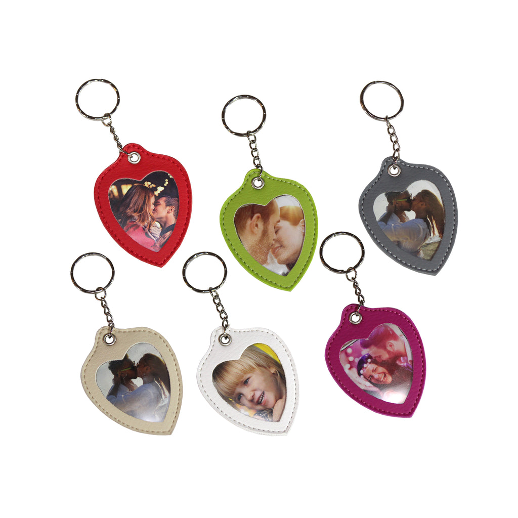 Portachiavi ecopelle cuore, con porta foto 3,5x4,5. Confezione da 12 pz assortiti. Prezzo singolo pezzo consigliato 7,00+Iva.