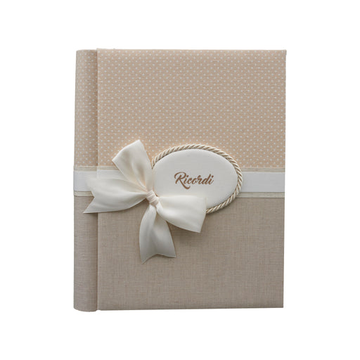 Visualizza tutti i dettagliAlbum tela, righe tinta unita con applicazione e fiocco. Blocco classico con velina. L'album viene consegnato con sacchetto di protezione certifica...