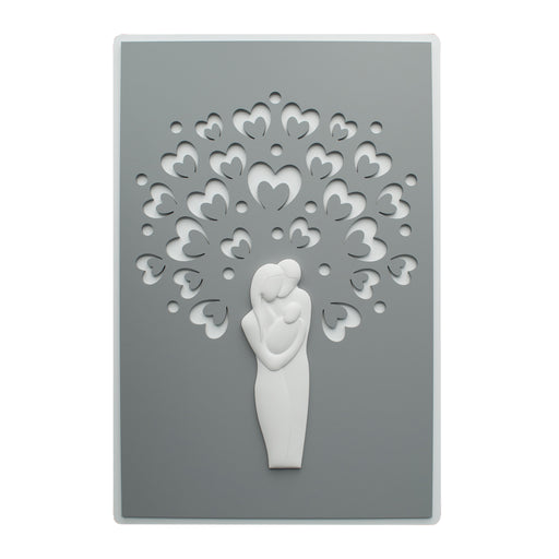 Visualizza tutti i dettagliPannello legno laccato base bianca con intaglio grigio e applicazione Famiglia in polvere di marmo e resina bianca. dimensione: cm. 40X60 L'oggetto...