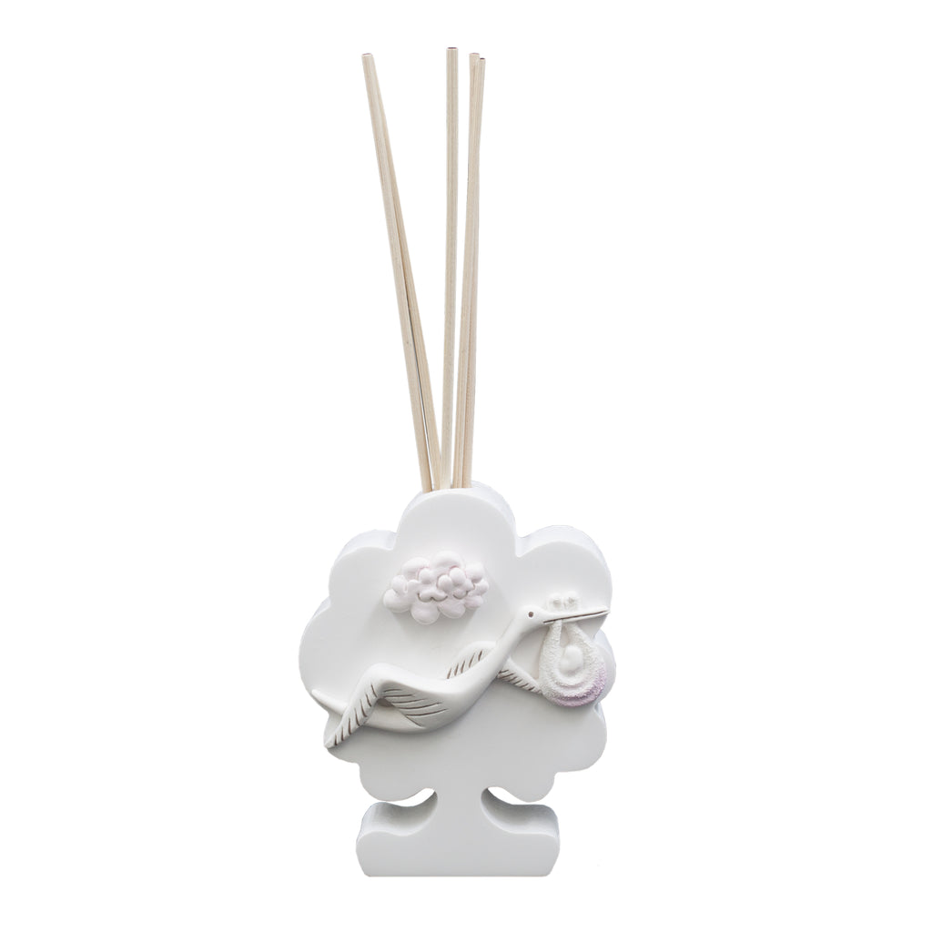 Visualizza tutti i dettagliDiffusore profumatore cuore 11x10 in polvere di marmo e resina, con Cicogna rosa dipinta a mano, con boccetta di profumo orchidea nera da 15 ml e b...
