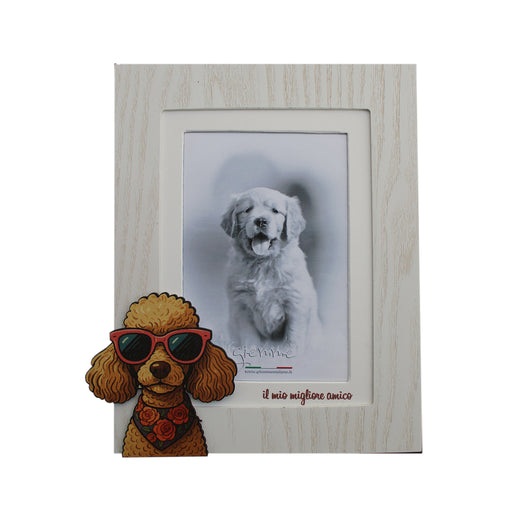 Visualizza tutti i dettagliCornice in legno da tavolo, con applicazione cagnolino. All'inteno un passepartout con la scritta " il mio migliore amico" per foto formato 10x15 C...