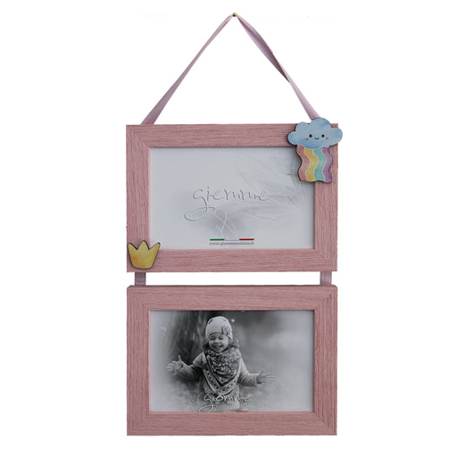 Visualizza tutti i dettagliCornice legno rosa opaco multipla da parete, per bambina. applicazione nuvoletta Caratteristiche principali Realizzazione ArtigianaleOgni cornic...