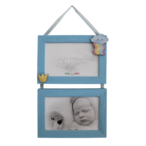 Visualizza tutti i dettagliCornice legno celeste opaco multipla da parete, per bambino. applicazione nuvoletta Caratteristiche principali Realizzazione ArtigianaleOgni cor...
