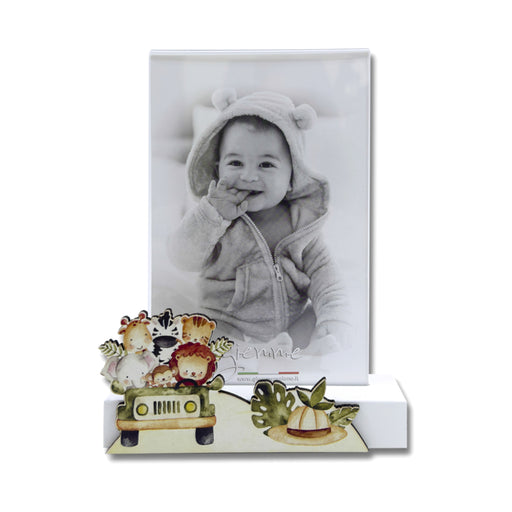 Visualizza tutti i dettagliCornice con base in Legno Bianco con plexiglas e Applicazione in legno Safari. – Made in Italy Un dolce benvenuto per i tuoi ricordi più preziosi....