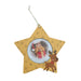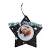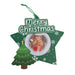 Cornice in legno a stella formato foto 9X9 con stampa natalizia con nastro per appenendere all'albero di natale o come decorazione, oppure chiudipacco.