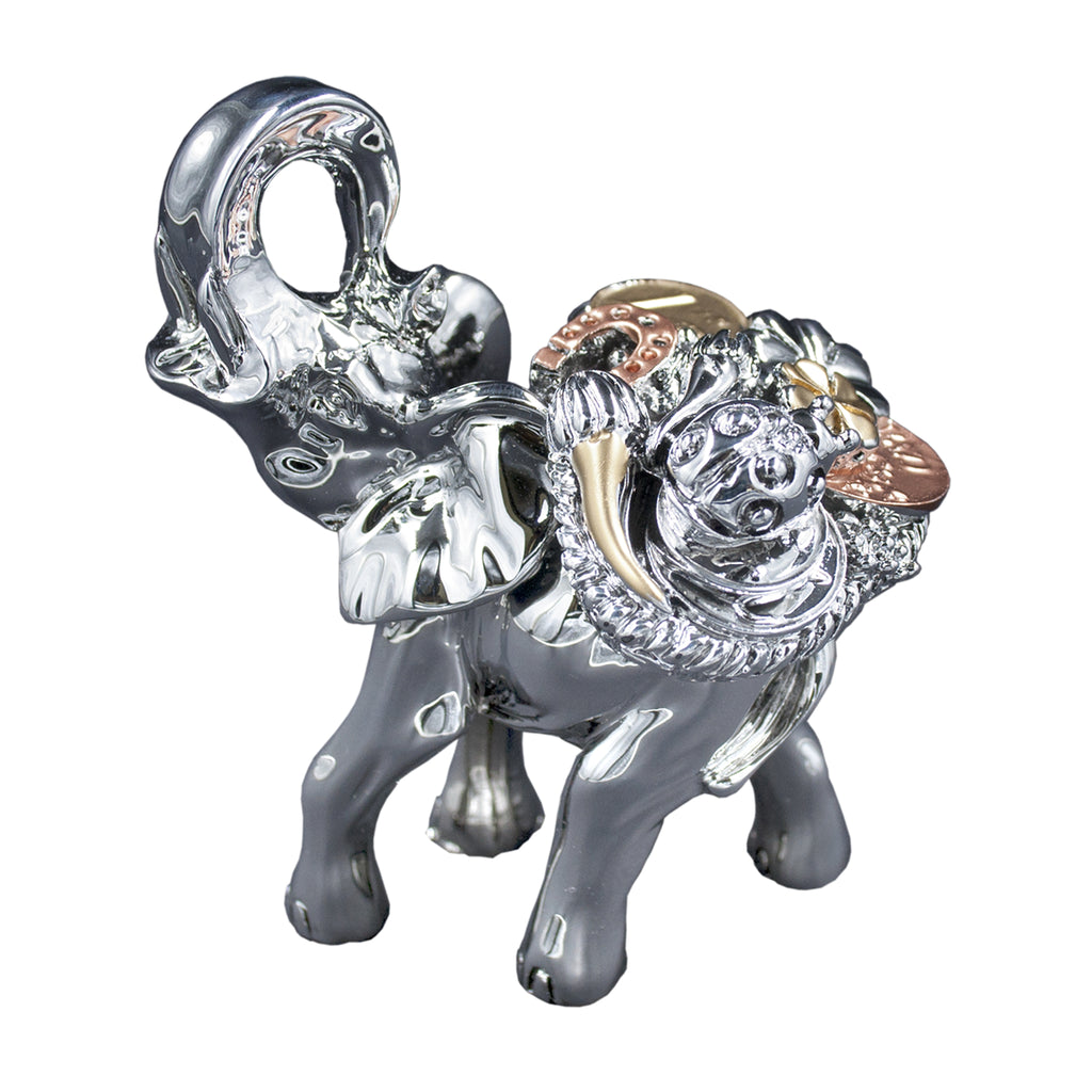 Elefantino portafortuna, in polvere di marmo e resina argentato.